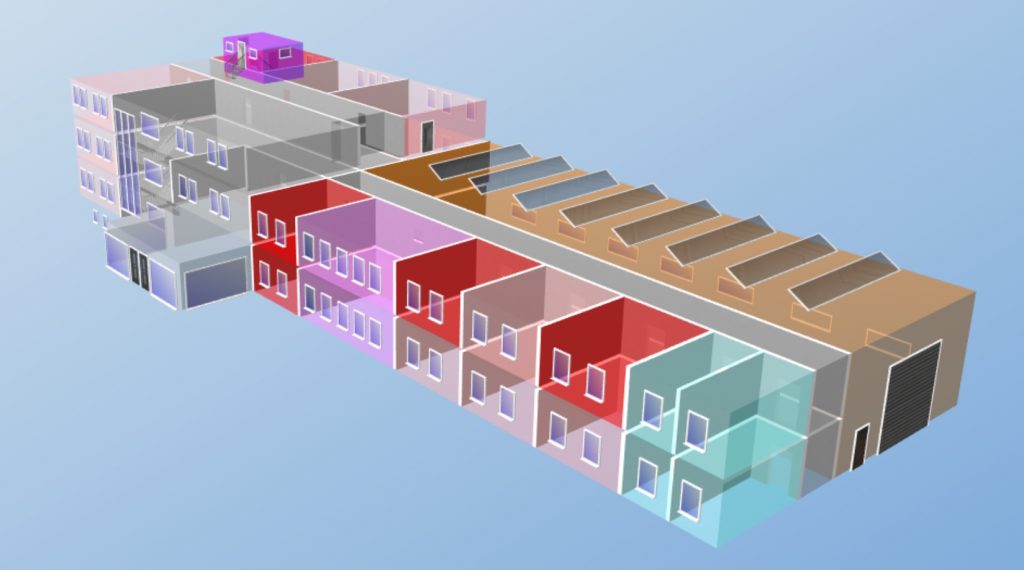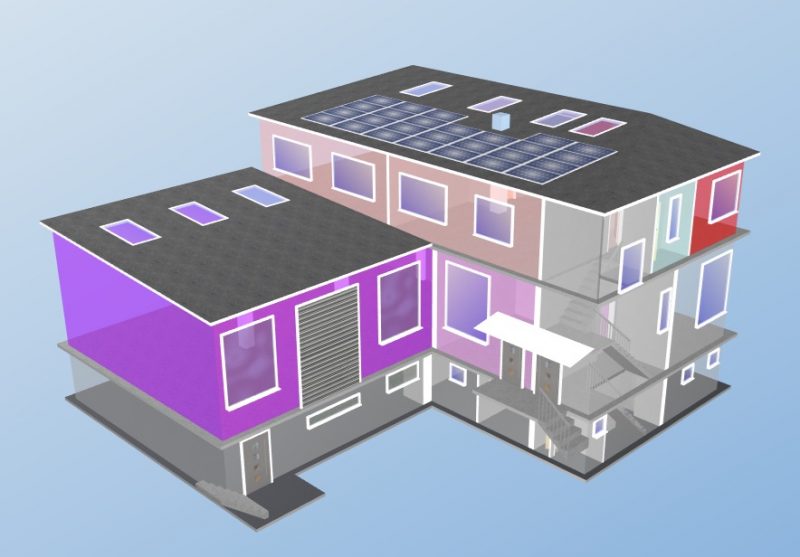 10. Modellierung der Gebäudehülle und Nutzungszonen mittels 3D-Software mit den energetisch relevanten Bauteilen.